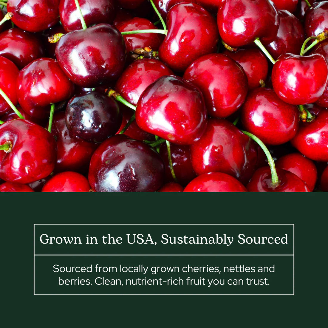 • Nutrient-dense cherries, blackberries, and nettles are locally harvested at peak potency and gently micronized for easy assimilation, retaining all the natural goodness of the whole plants.