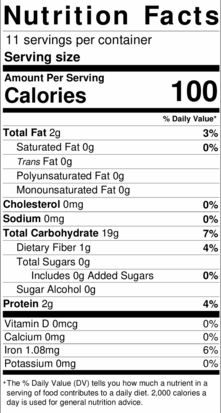 Allergen Information: Certified Gluten Free, Vegan, contains no dairy, contains no trans fats.