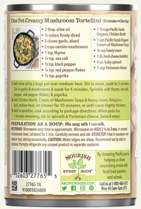 Ingredients: water, mushrooms, cream, cornstarch, rice flower, sea salt, garlic powder, onion powder