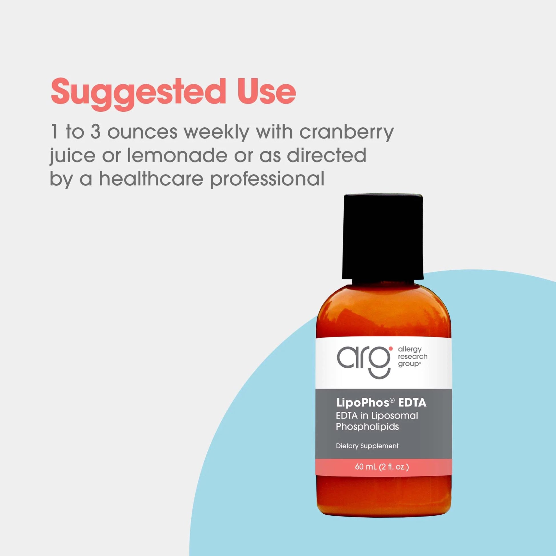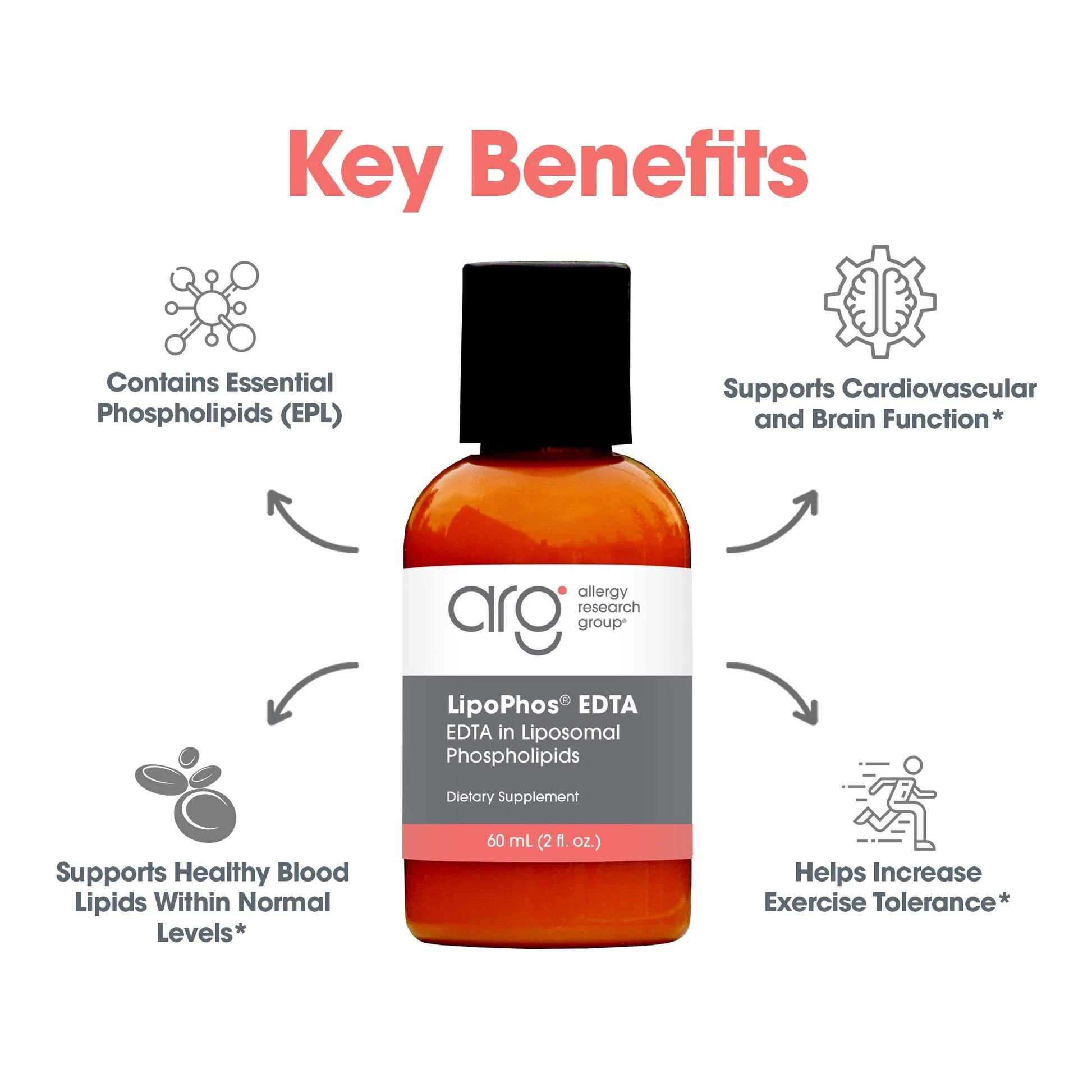 LipoPhos® EDTA contains Liposomal Phospholipids (LPL), with sodium EDTA (ethylenediamine tetraacetic acid), and other ingredients.*