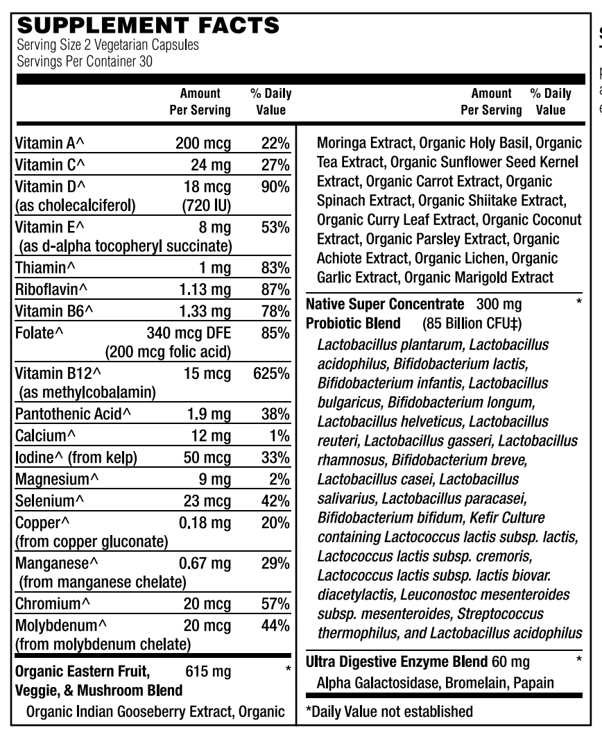• 300 mg Native Super Concentrate Probiotic Blend.
